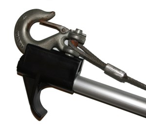 Simply slide the winch hook into the tapered grove, while standing safely on the dock. Use the Hook Stick to insert the winch hook into the eye, on the front of your boat.